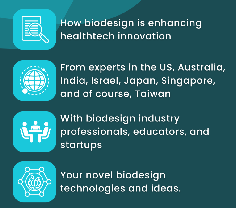 Taipei Medical University and the Taiwan Bio Industry Organization host Stanford Biodesign officers and Asia-Pacific biodesign experts in this joint session and panel discussion, to exchange views on the future of biodesign, need-driven healthtech, and the implications for the APAC region.